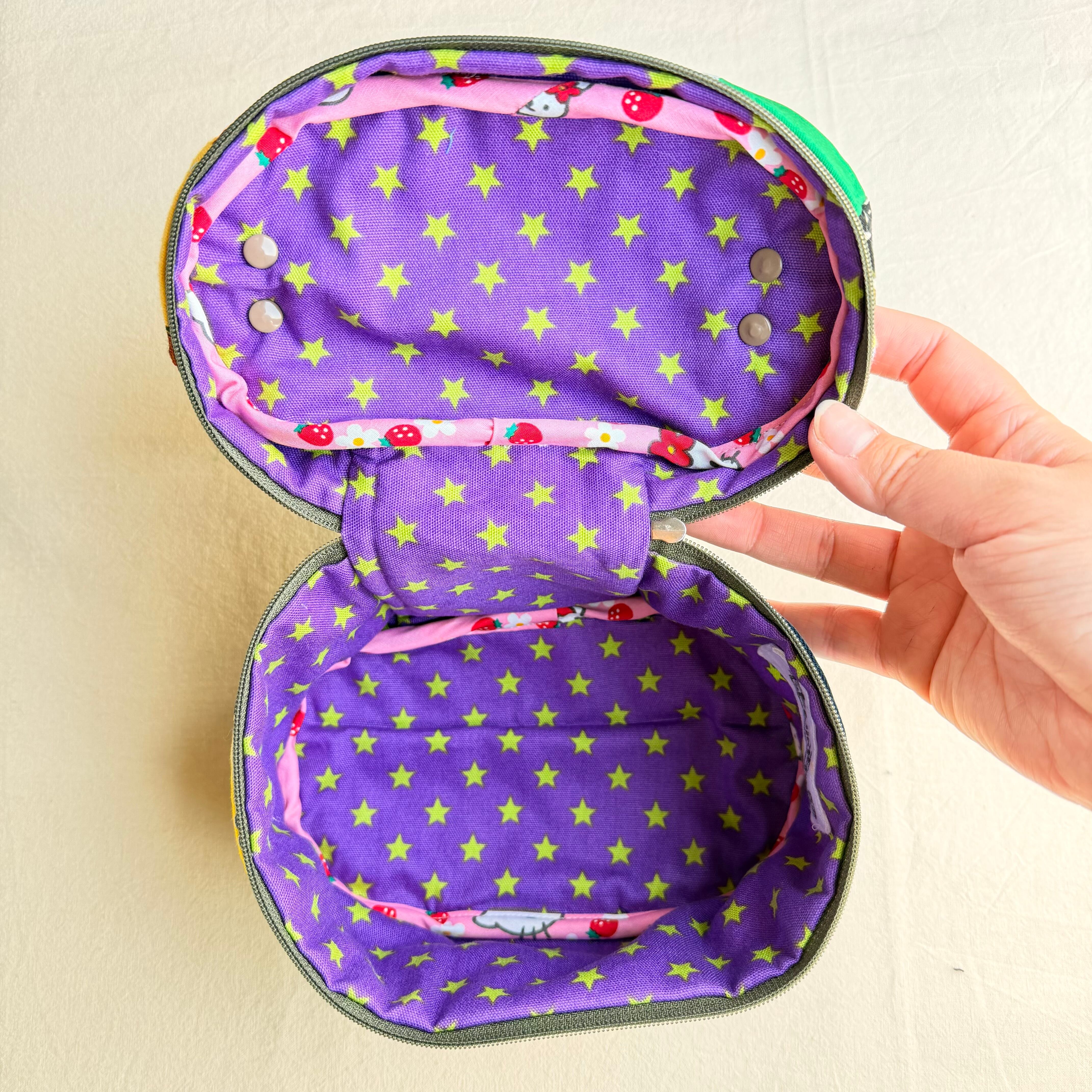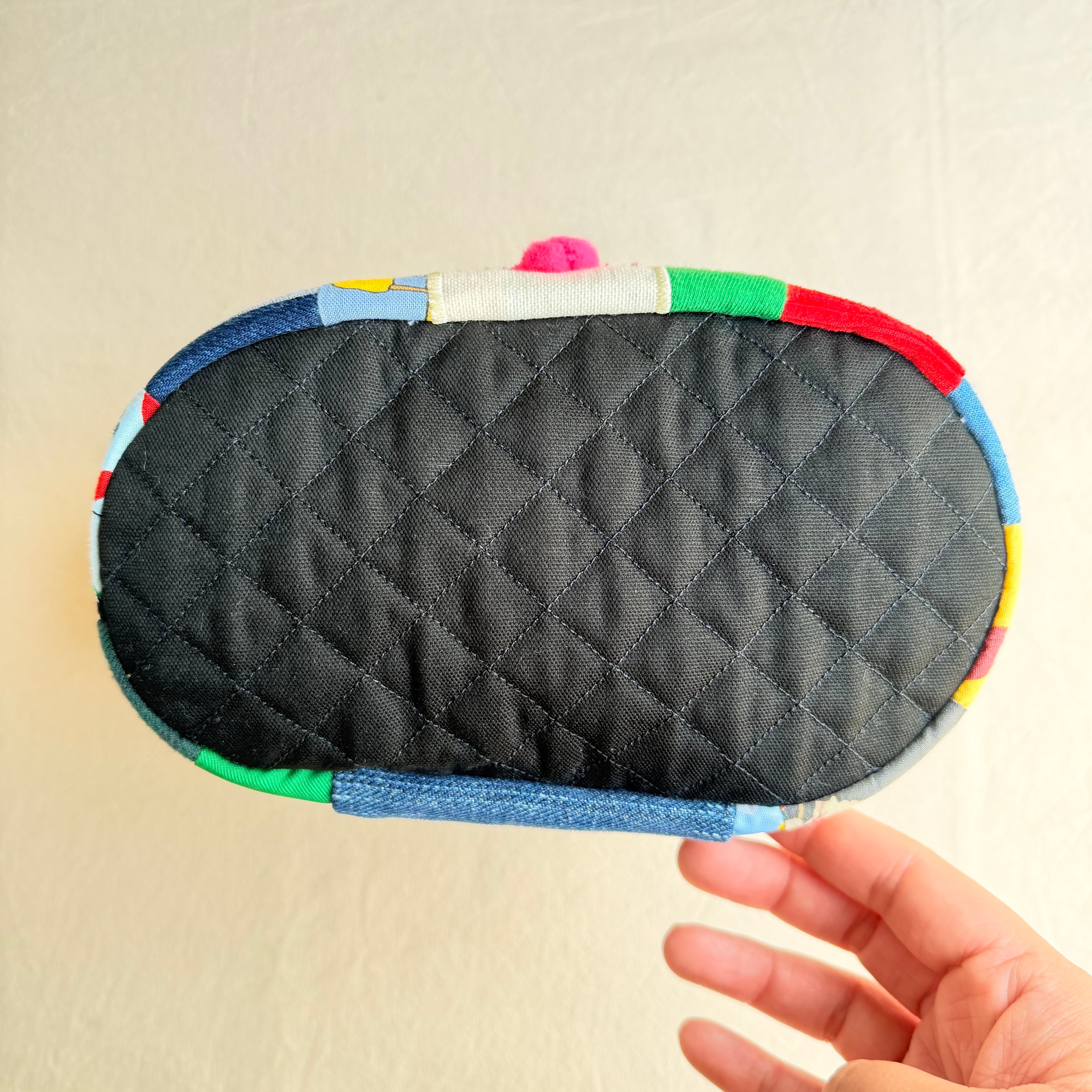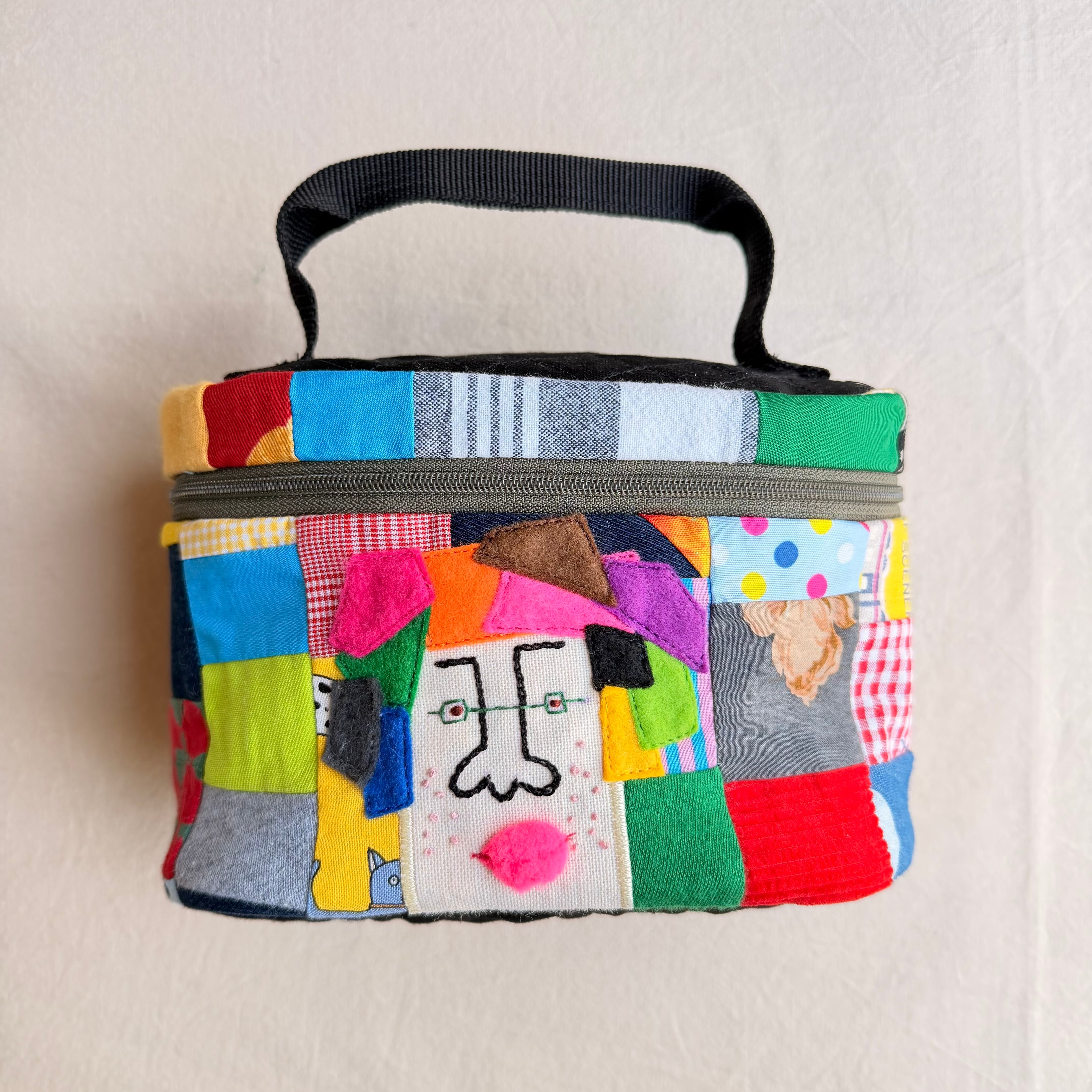 カオ刺繍の持ち手付きガバッとポーチ