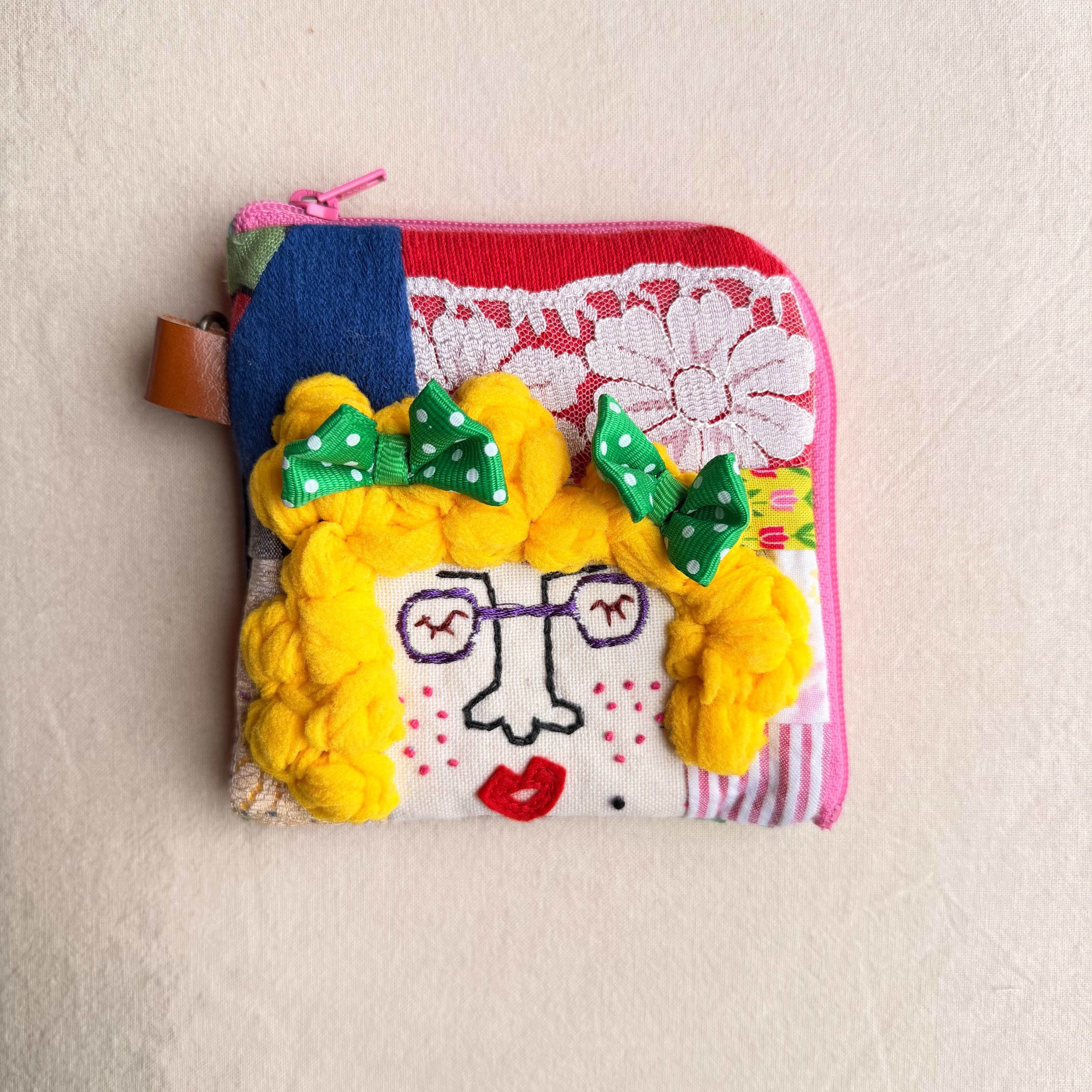 176 カオ刺繡のL字ジップお財布ポーチ 176