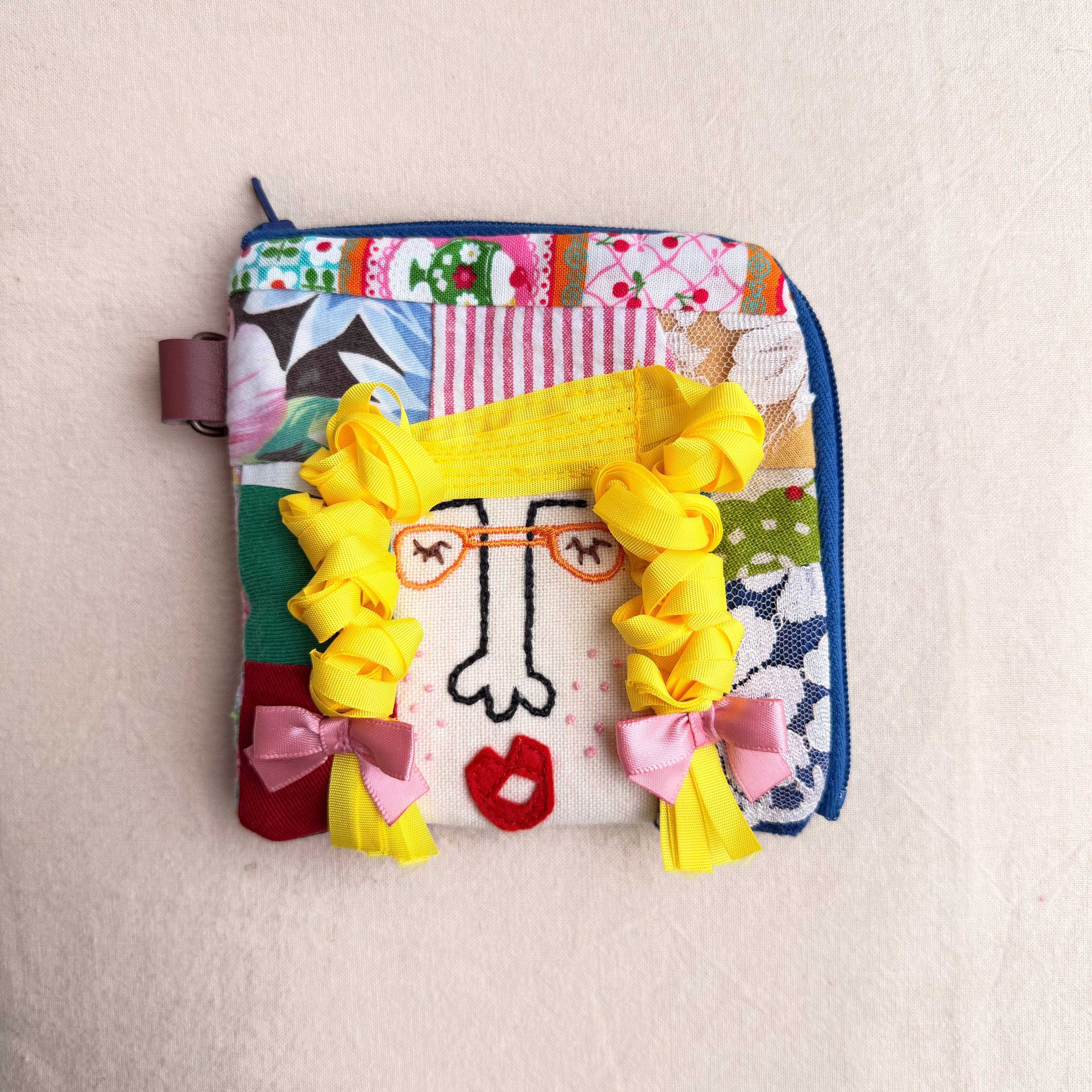 177 カオ刺繡のL字ジップお財布ポーチ 177