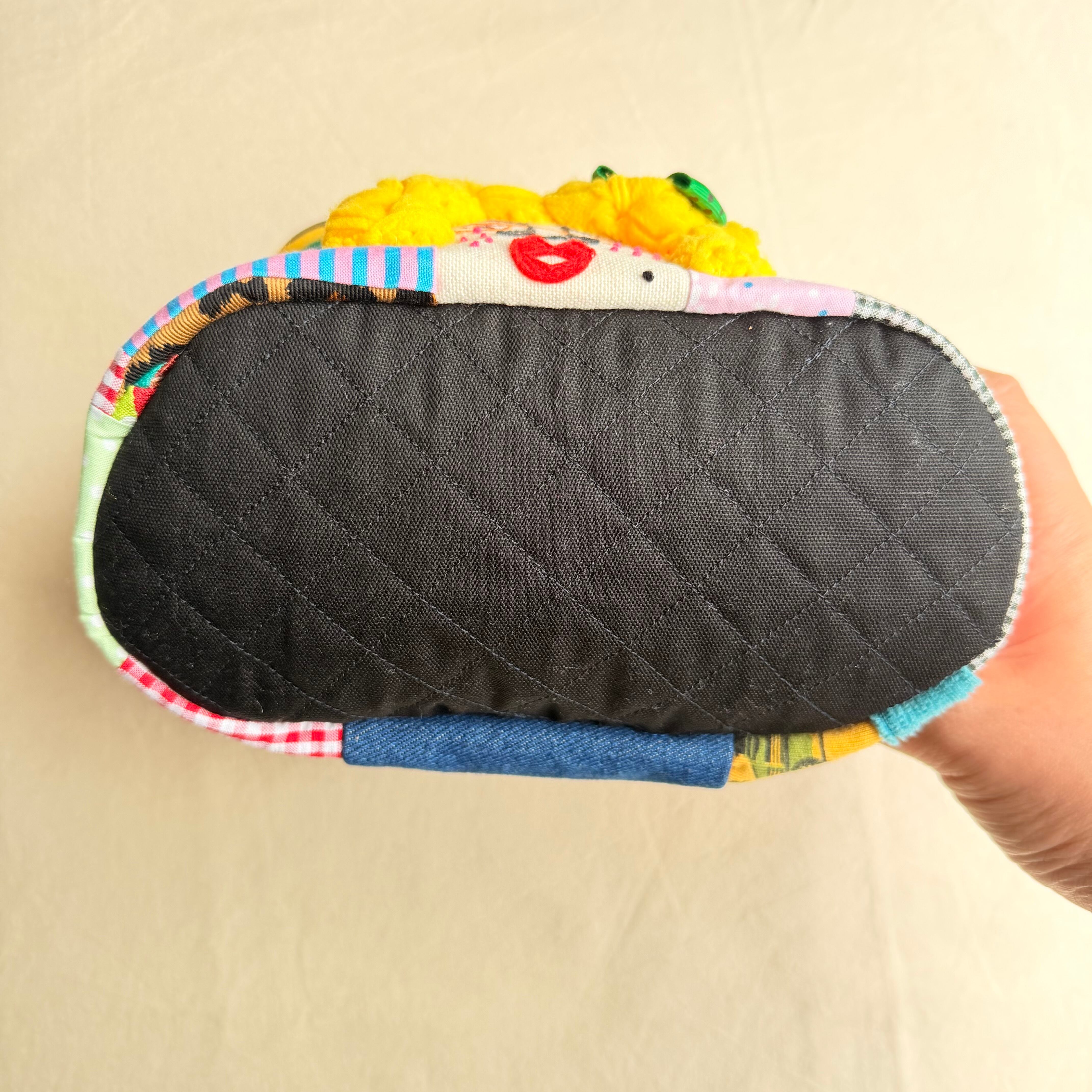 カオ刺繍のデザインが魅力的なポーチです。 ユニークな見た目があなたの個性を引き立ててくれるアイテムです。