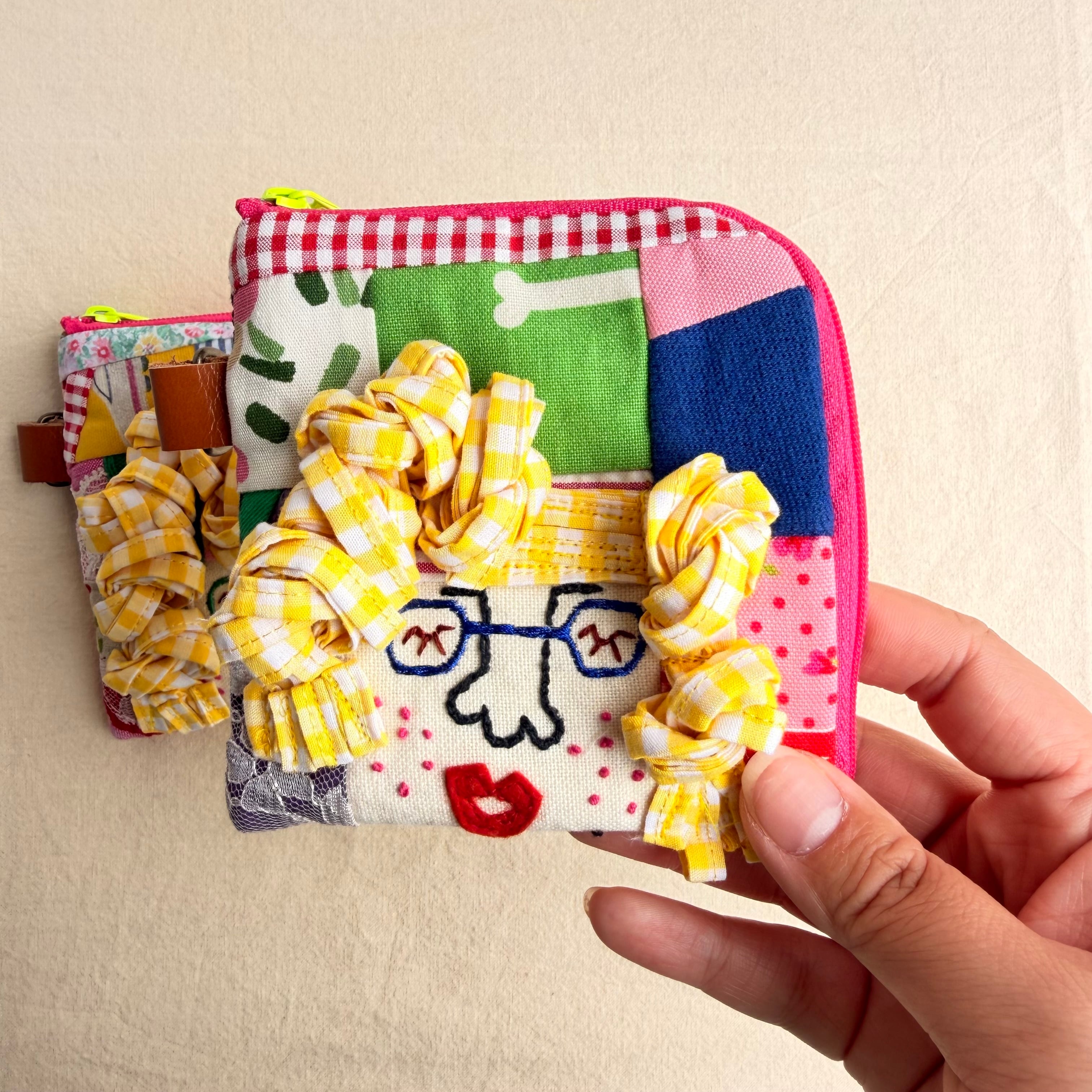 179-180 カオ刺繡のL字ジップお財布ポーチ 179-180