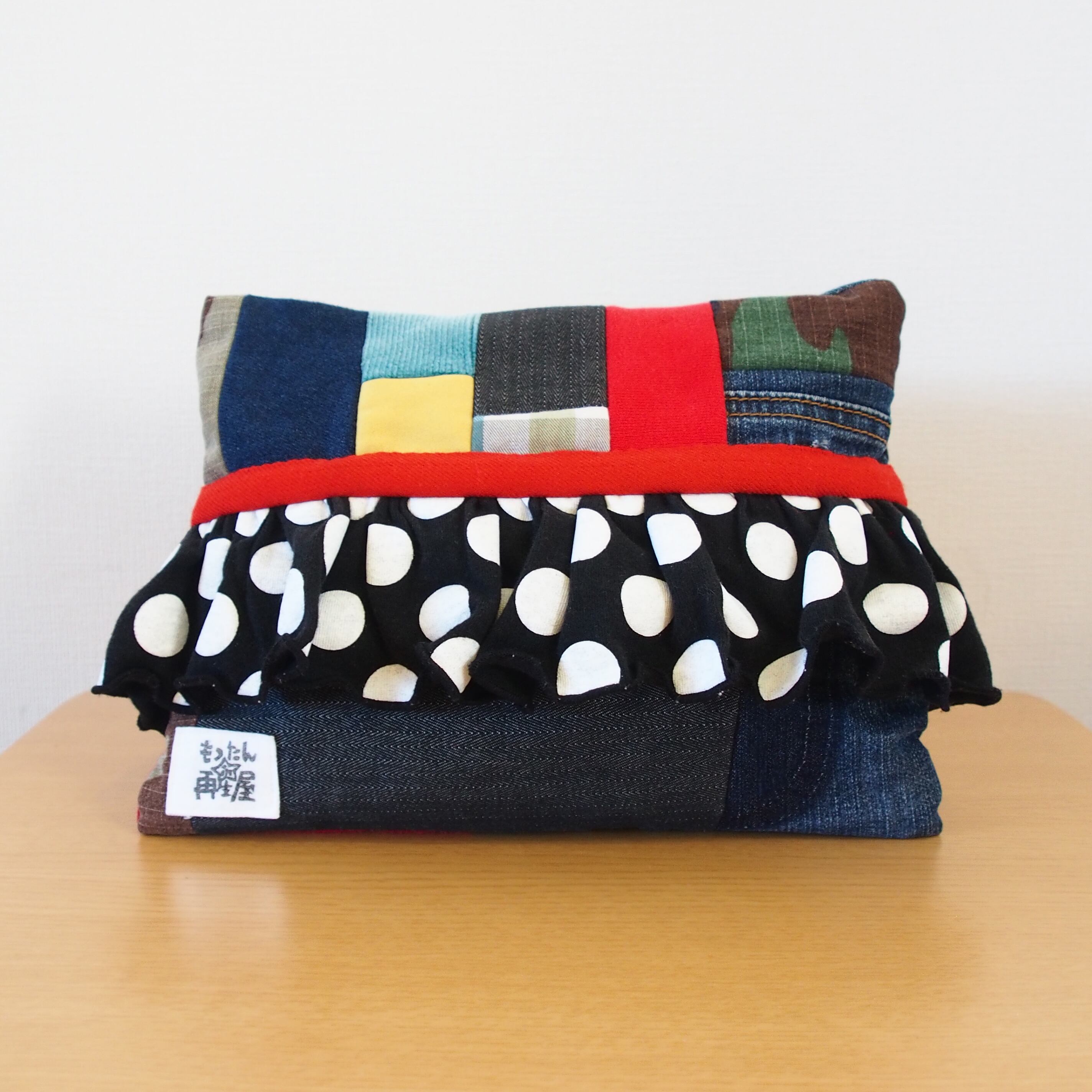 【名古屋へ嫁に行きました♪】カオ刺繍のフリル付きクラッチバッグ