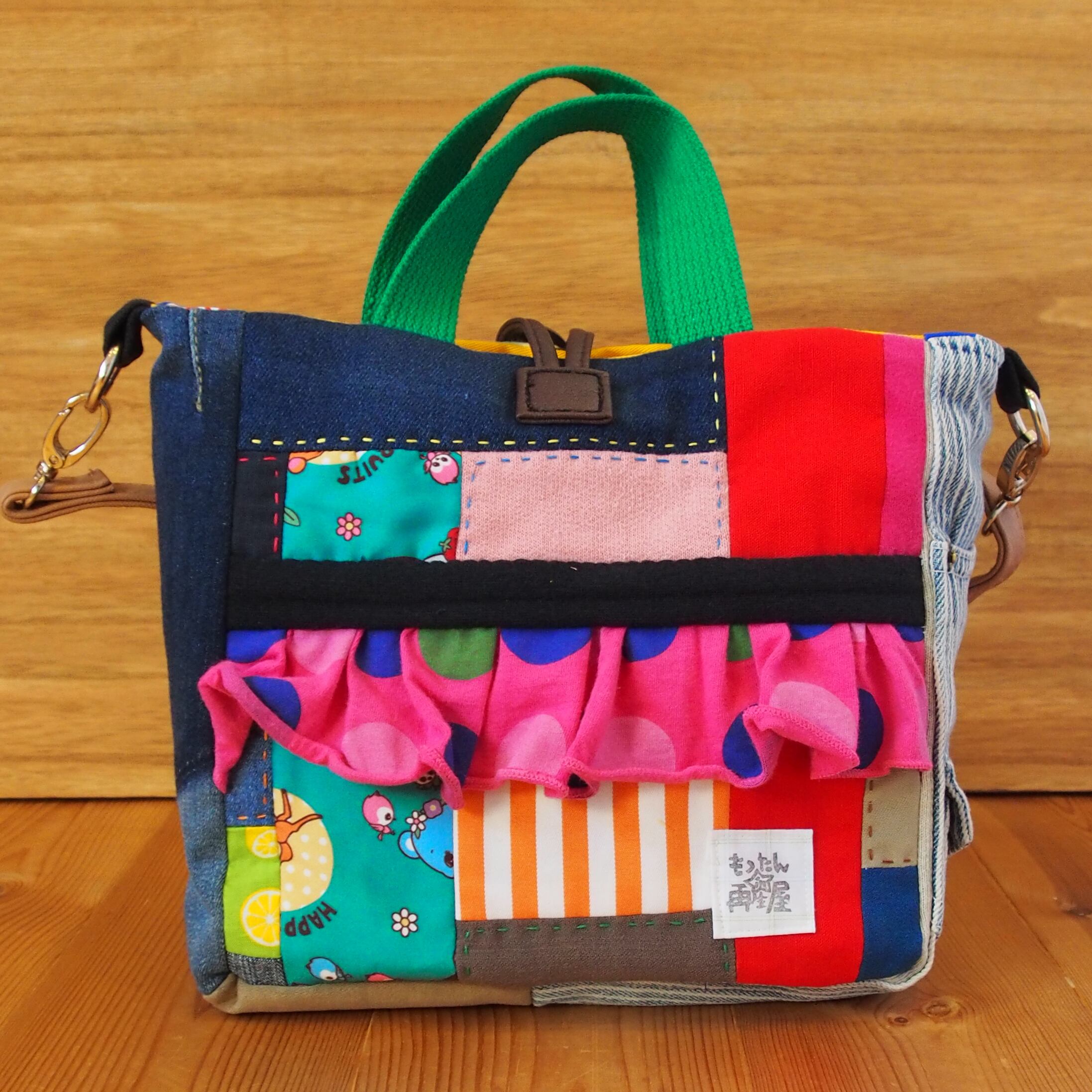カオ刺繍のフリルスクエアバッグ