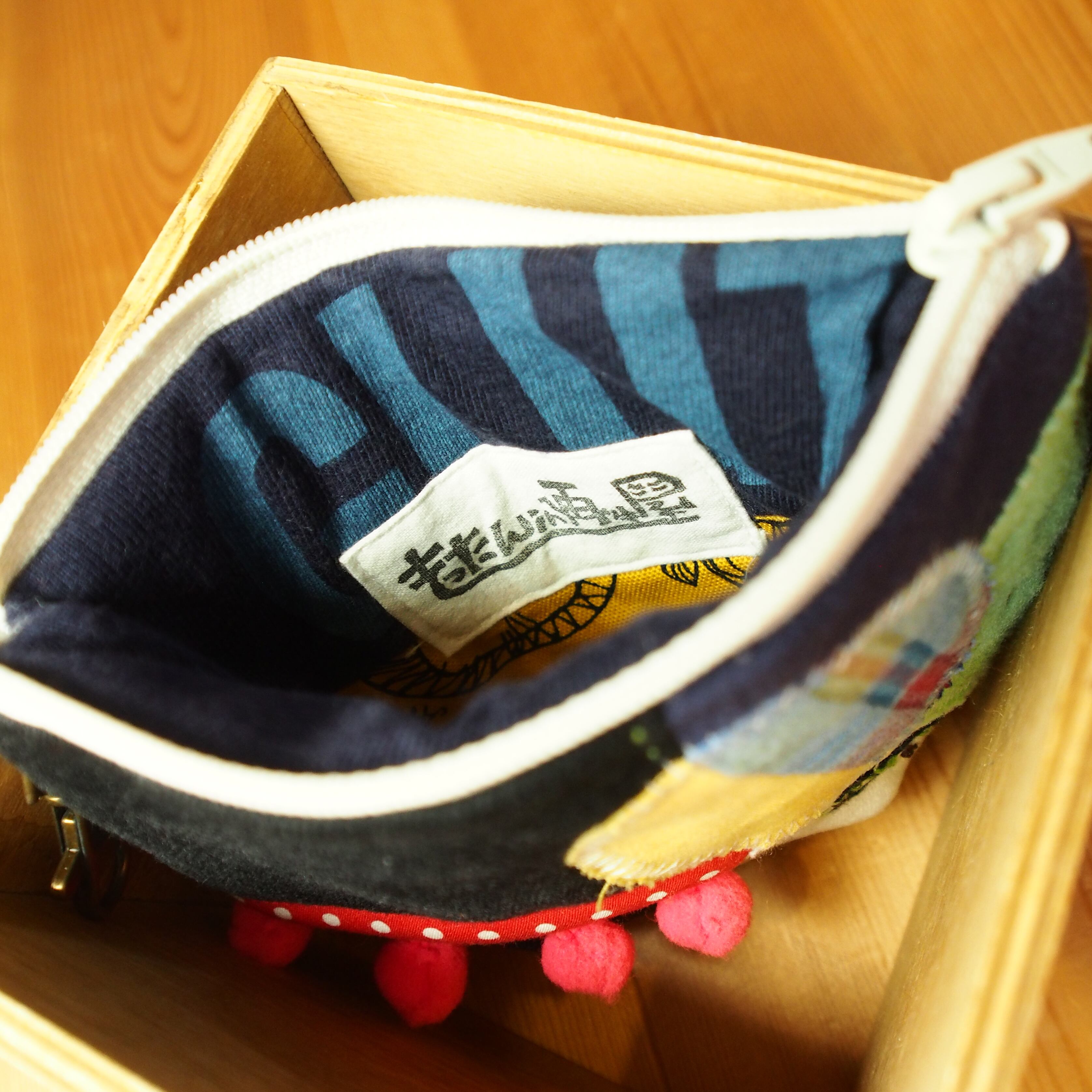 【仙台へお嫁に行きました】カオ刺繍のラウンド底ポーチ