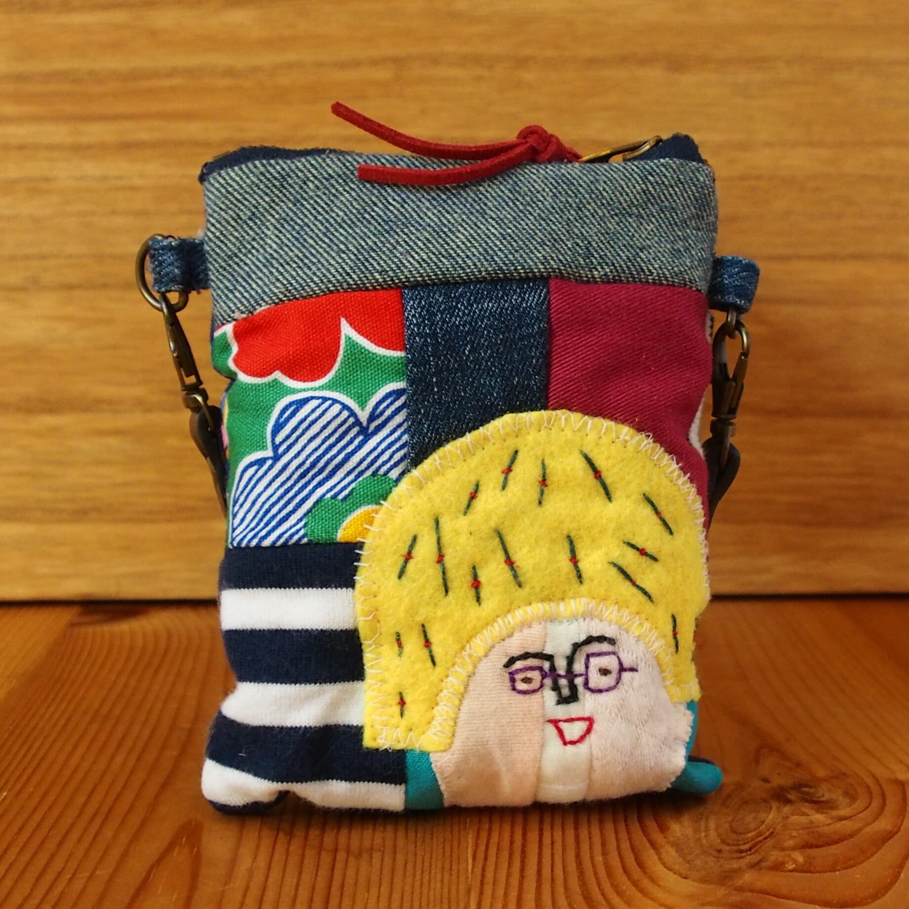 【仙台へお嫁に行きました】カオ刺繍のハンドルストラップポーチ