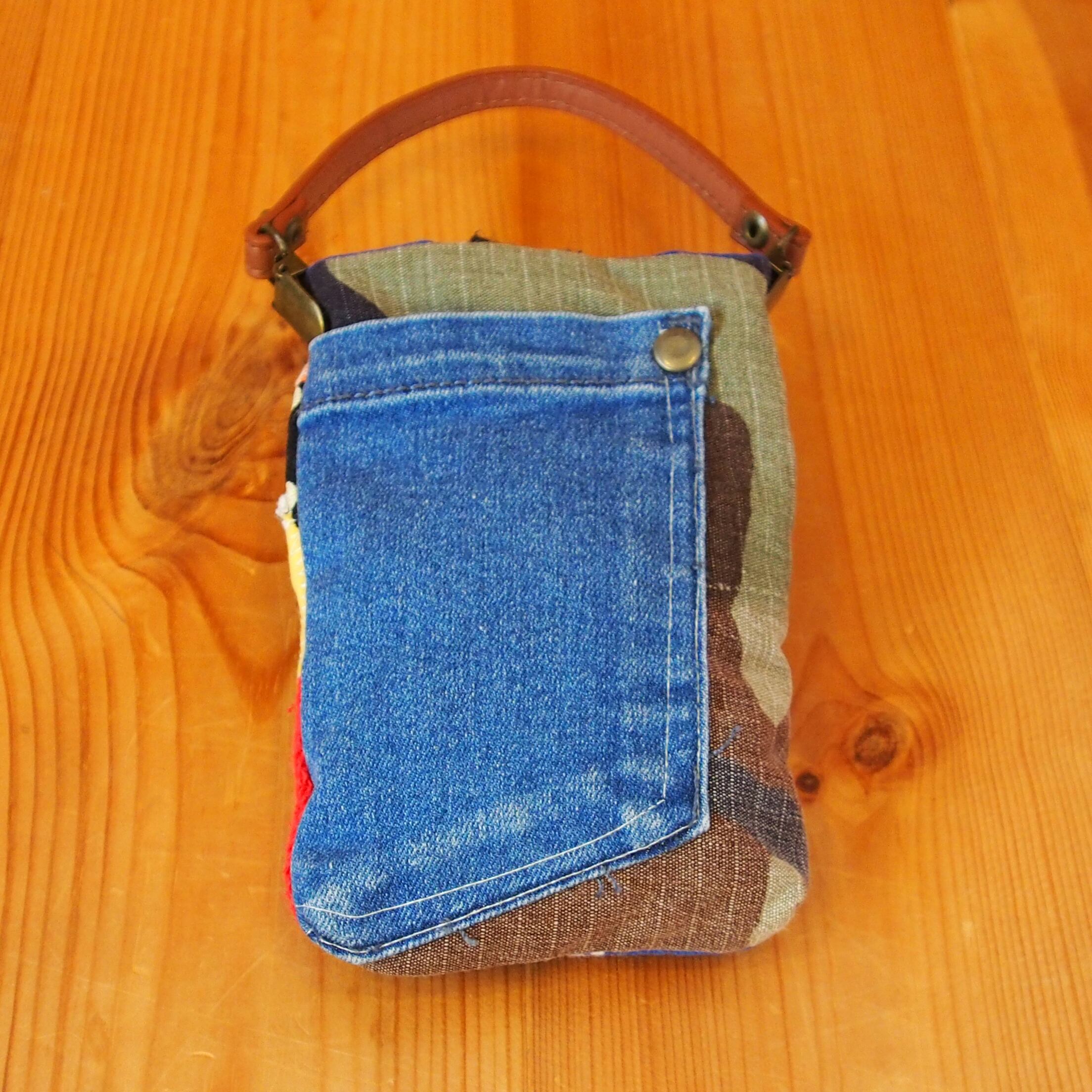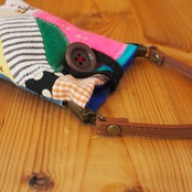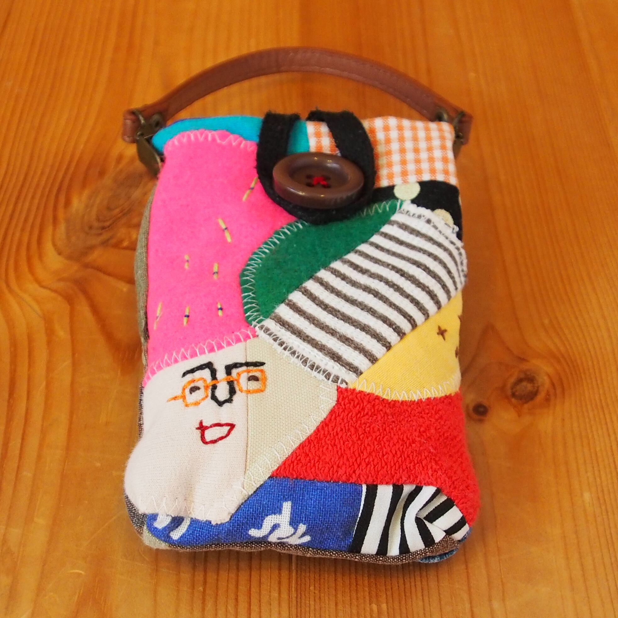 【仙台へお嫁に行きました】カオ刺繍のハンドルストラップポーチ ボタン II