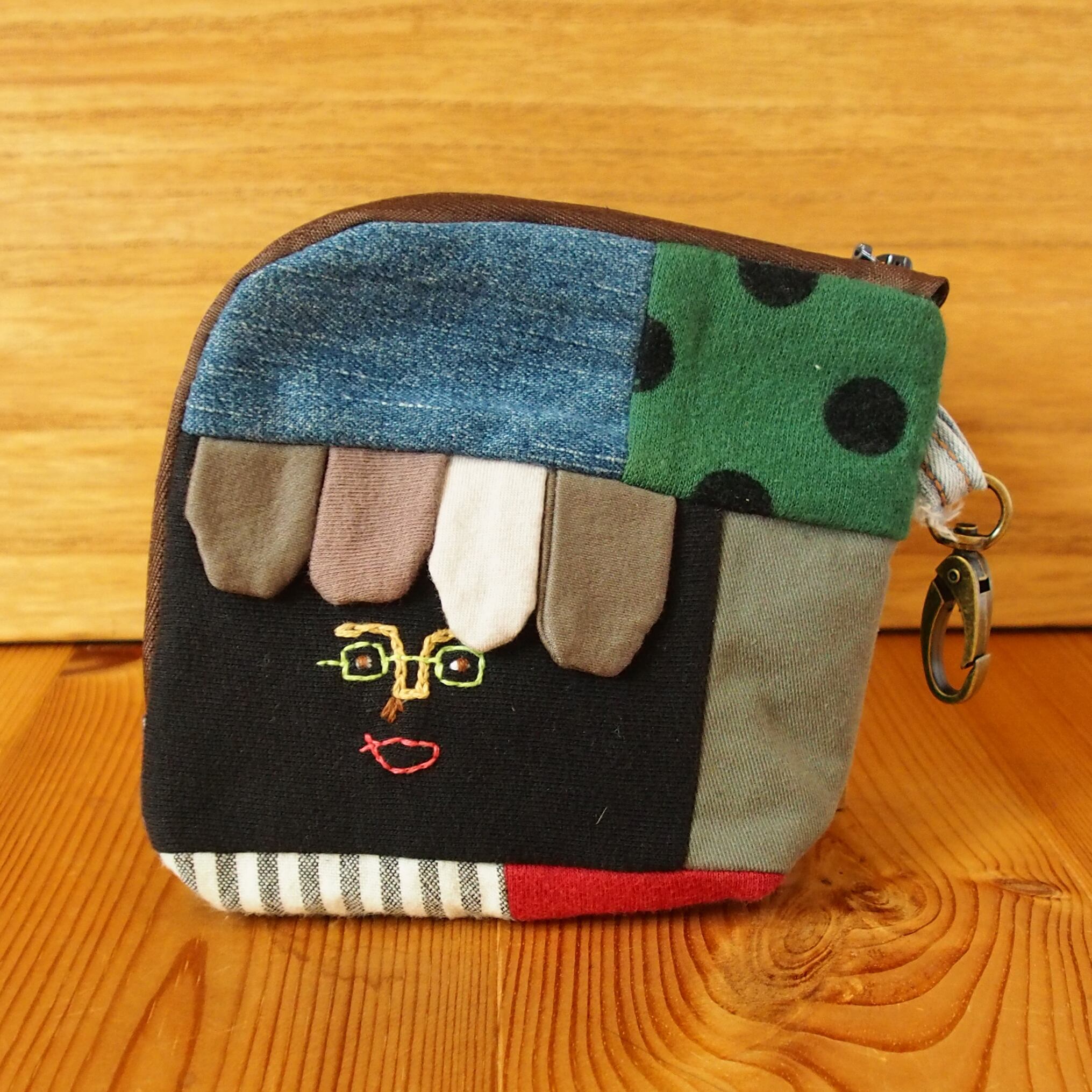 【嫁に行きました】カオ刺繍のL字ジップポーチ