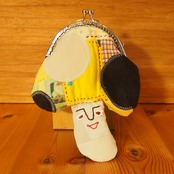 【名古屋へ嫁に行きました♪】カオ刺繍の黄キノコがま口