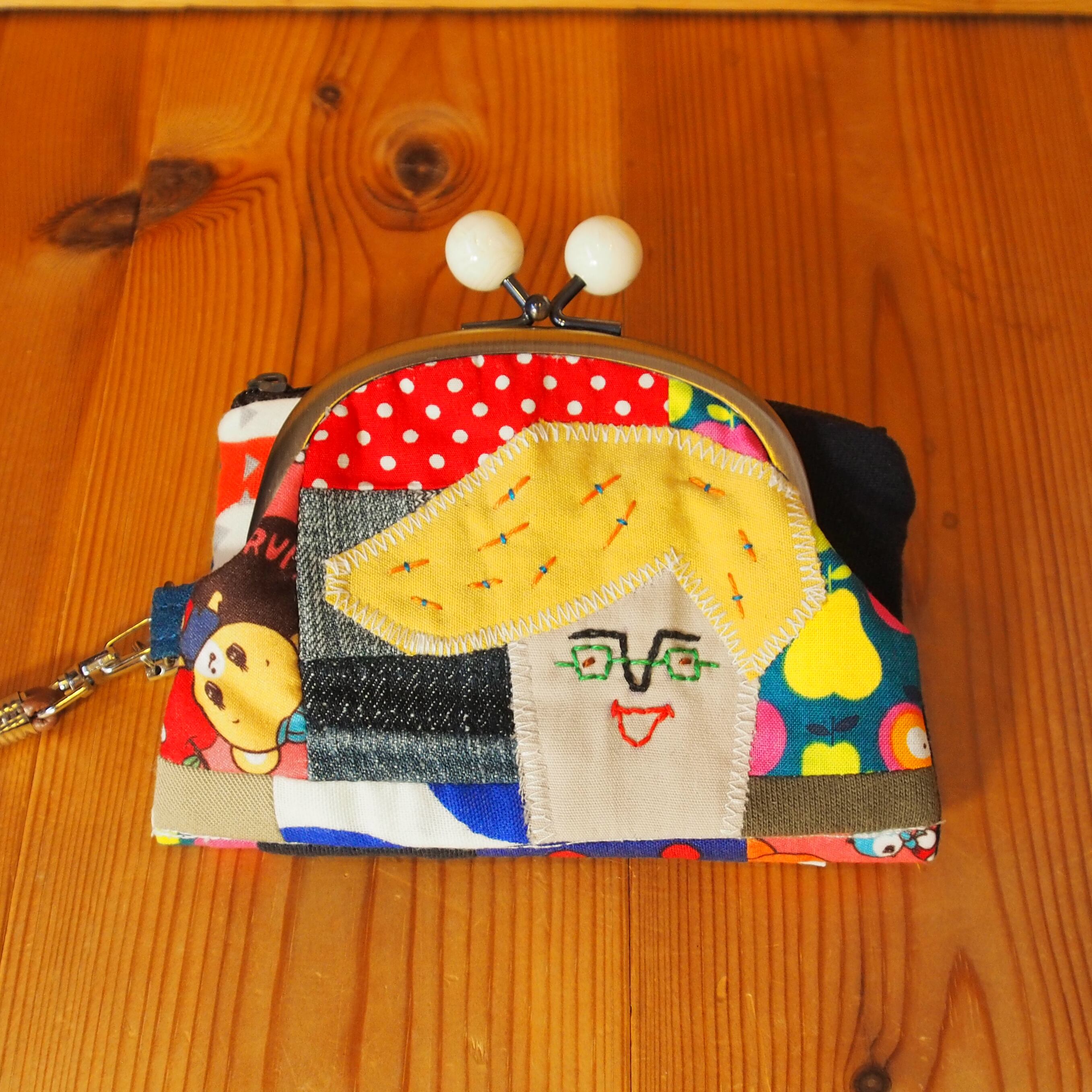 【お嫁に行きました】カオ刺繍の二つ折りちょっとそこまで!財布がま口