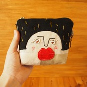 カオ刺繍のおかっぱポーチ