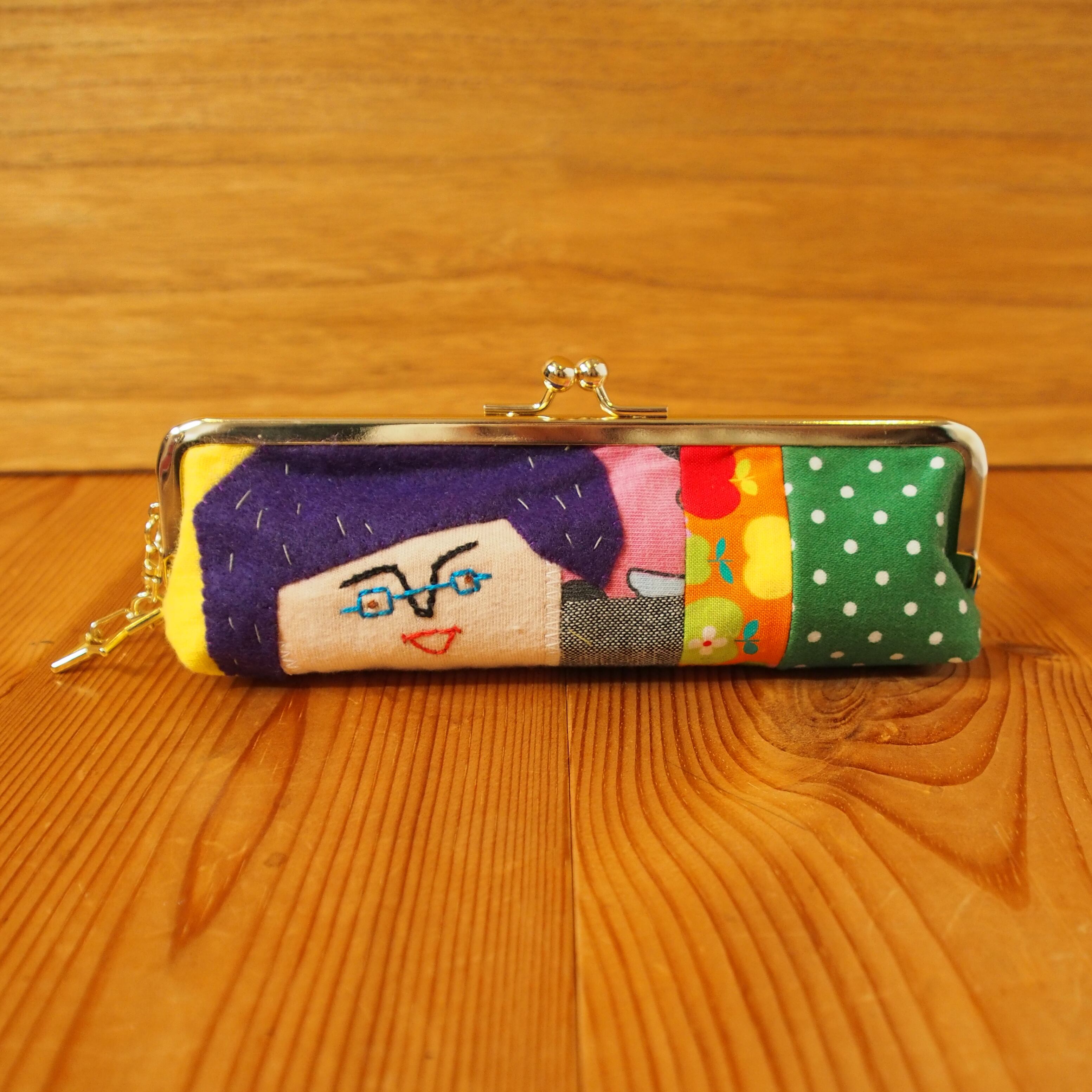 カオ刺繍のペンケースがま口