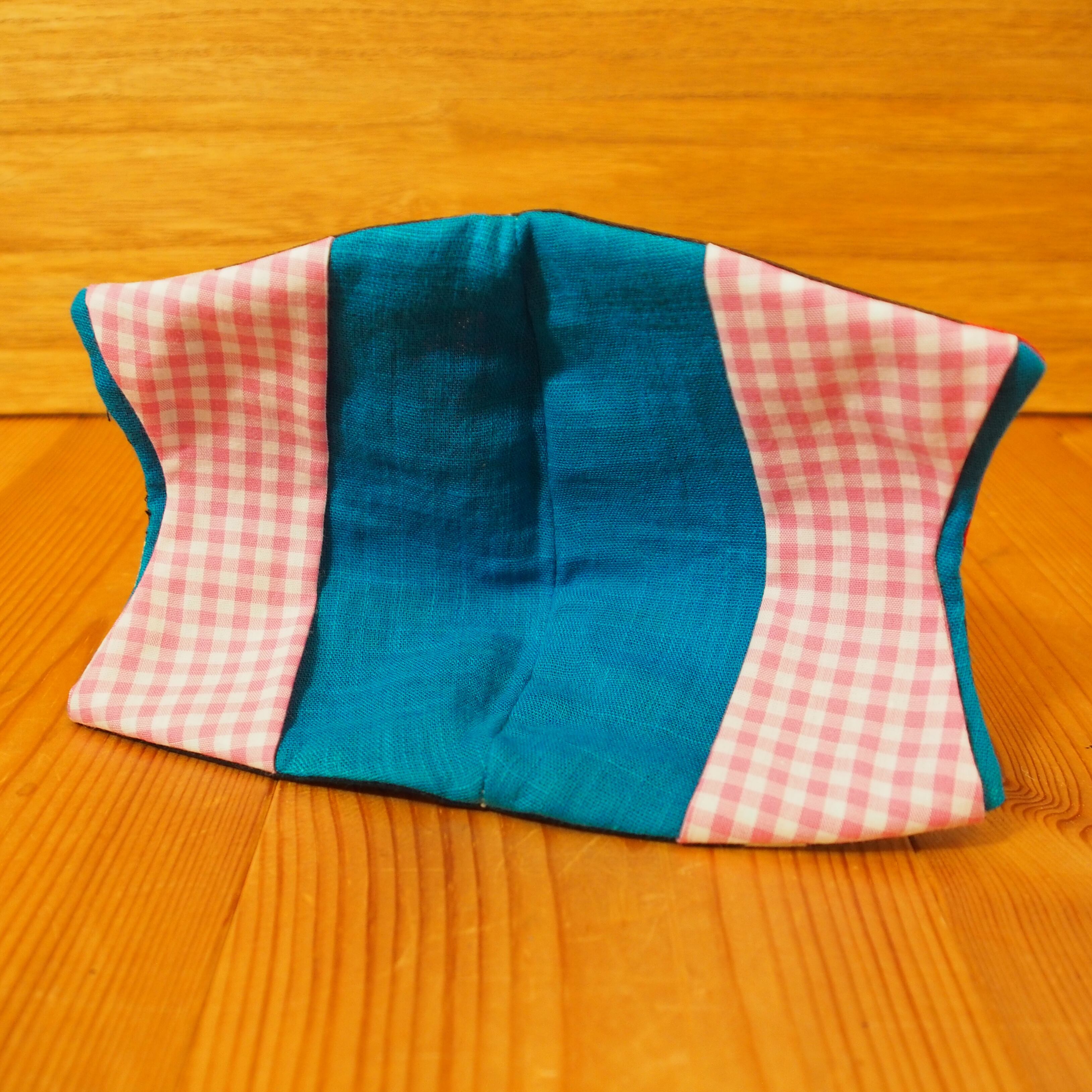 黒地に椿 [手ぬぐい] × ピンクチェック × ブルー [ダブルガーゼ]