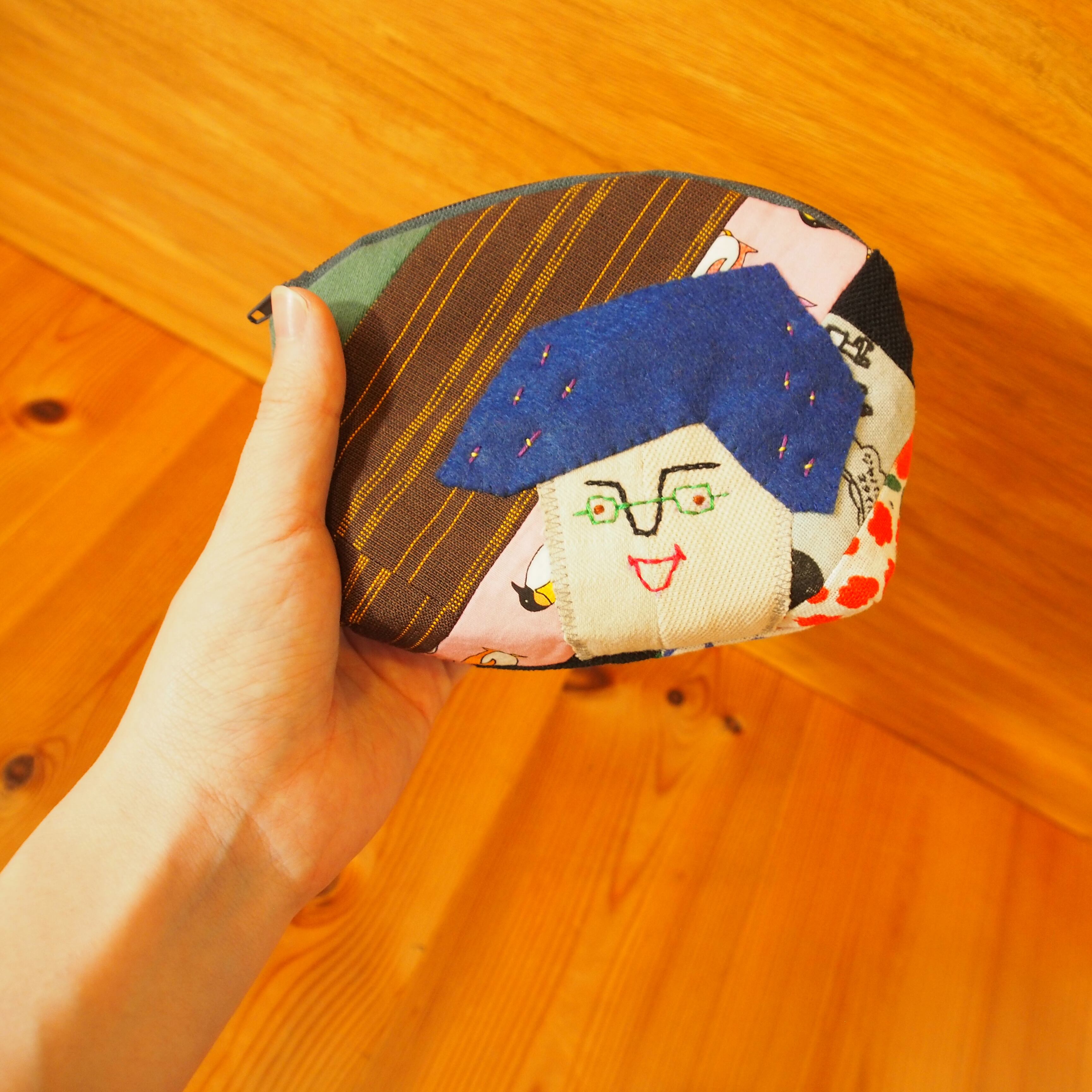 カオ刺繍のシェル型ポーチ Ⅱ