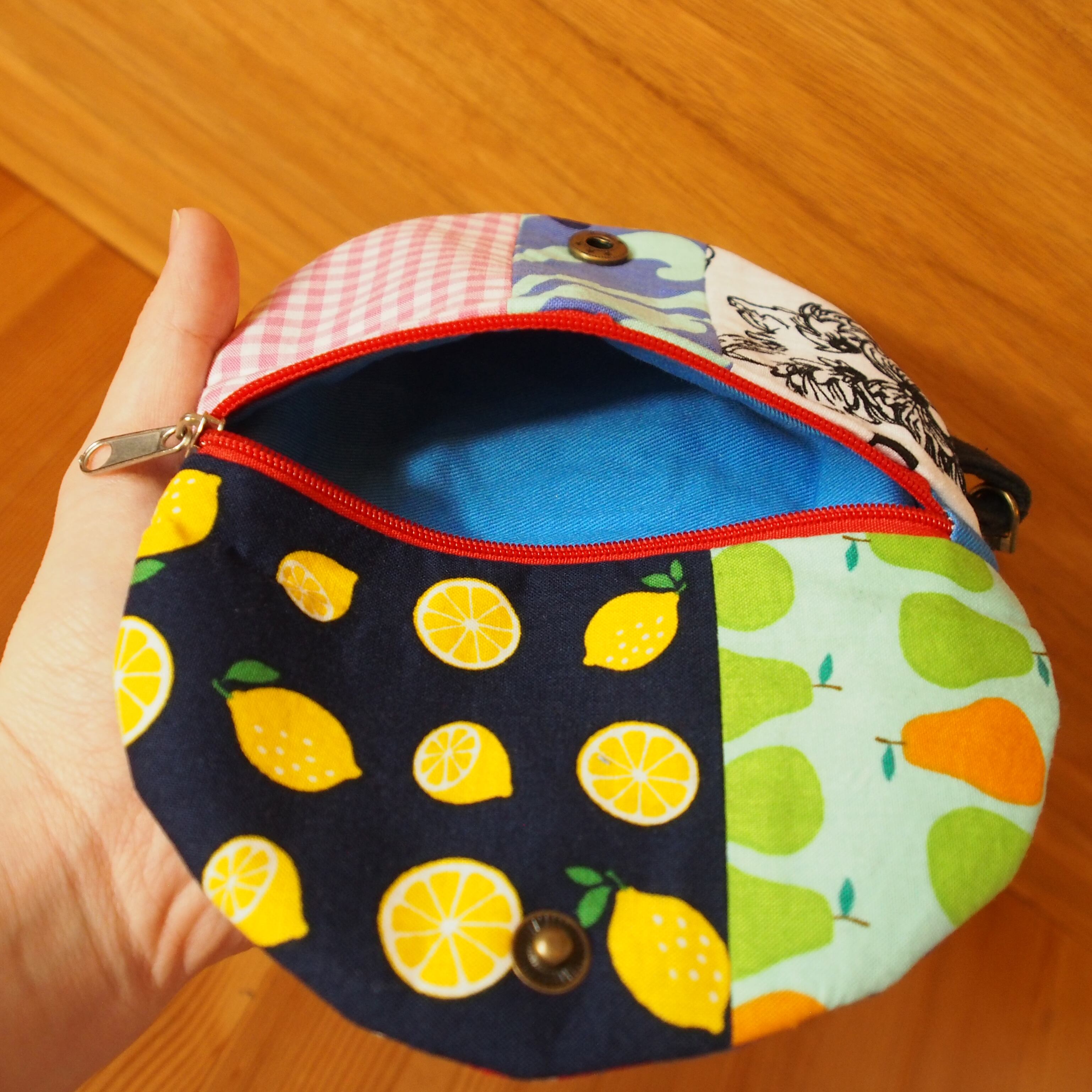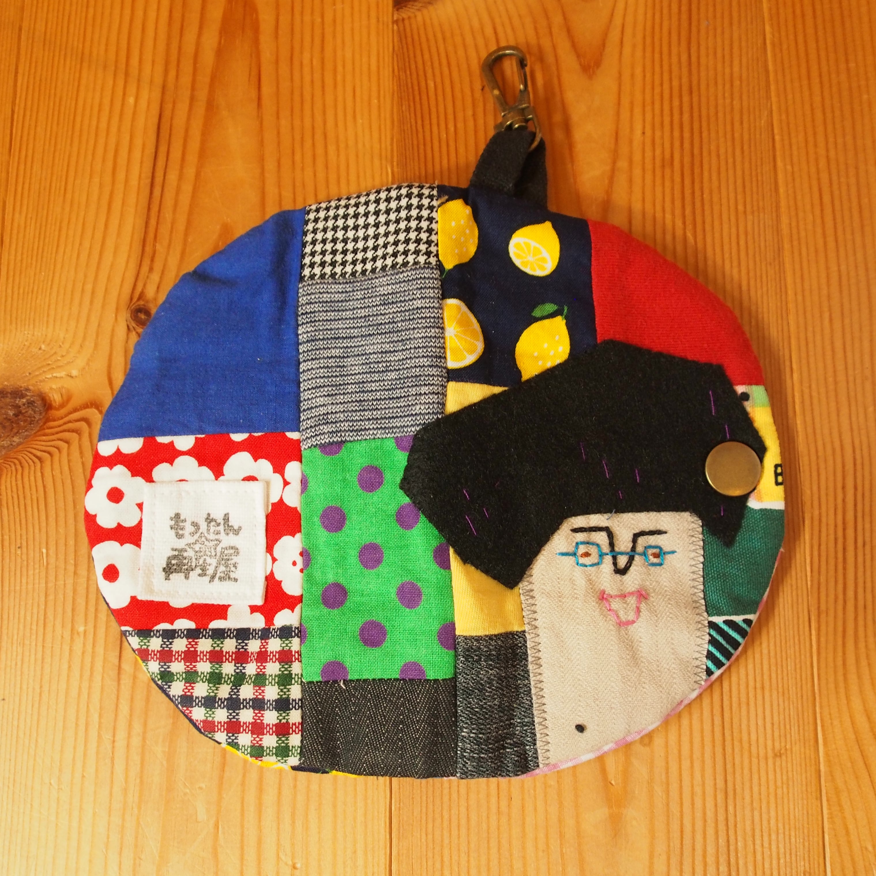カオ刺繍の二つ折りふたつ半月ポーチ