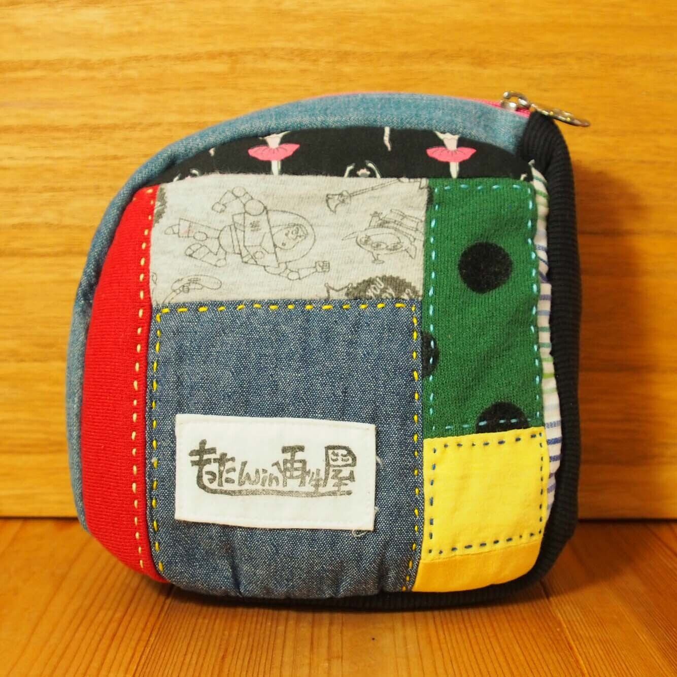 カオ刺繍の L字ジップ マチ付きポーチ