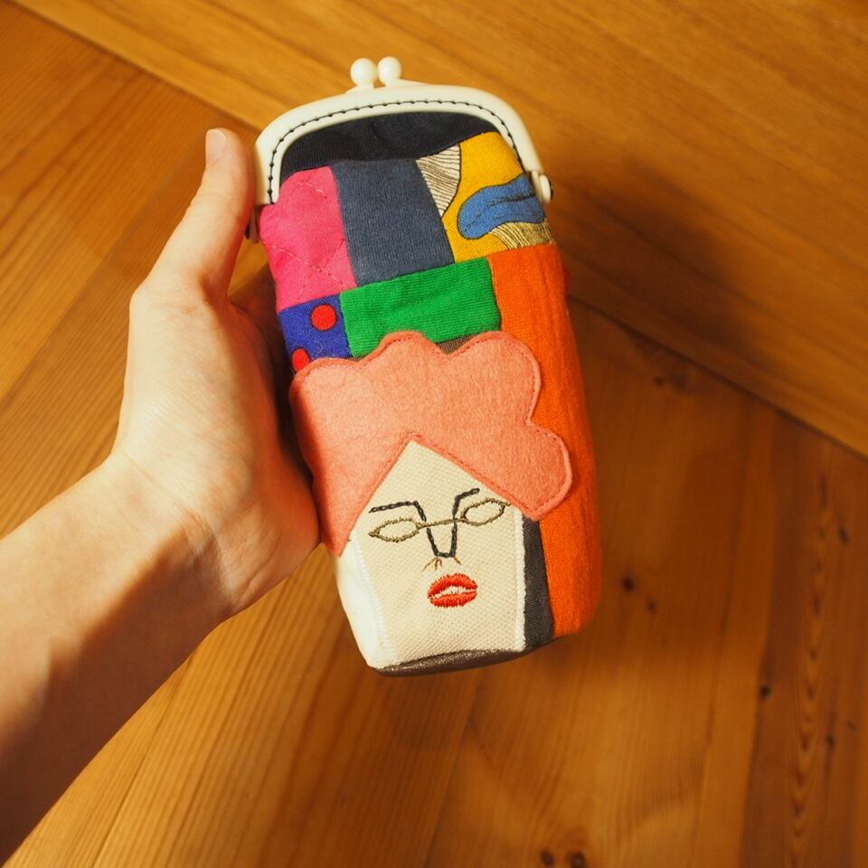 [更新] カオ刺繍のがま口ペンポーチ