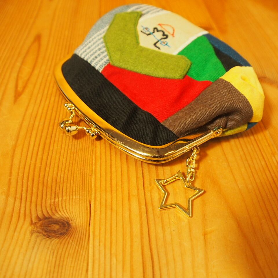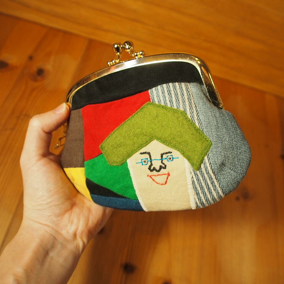 カオ刺繍の3層仕切りがま口