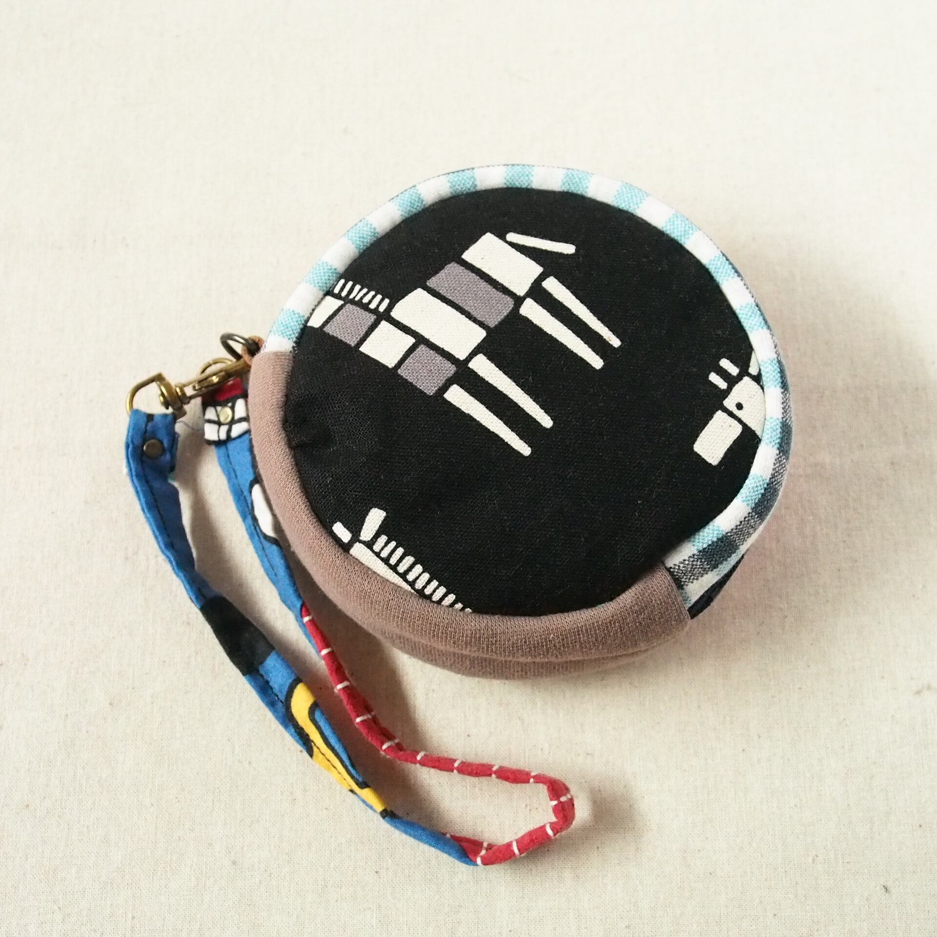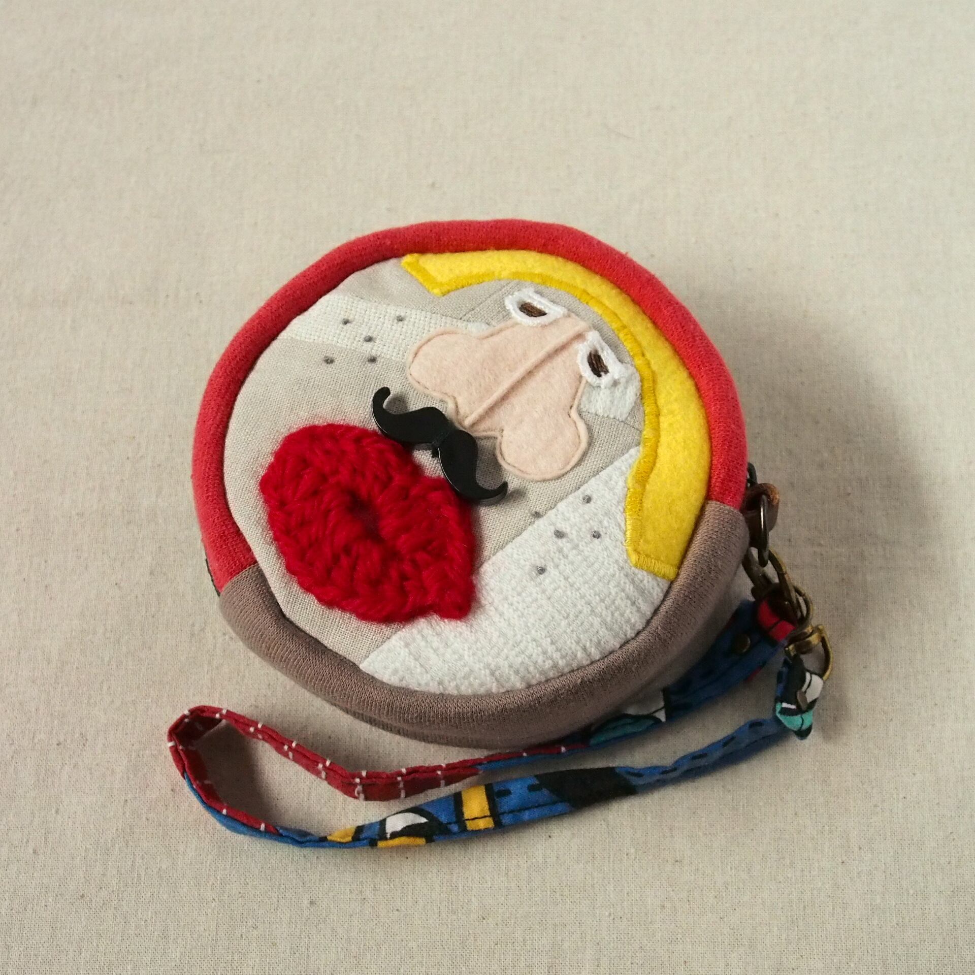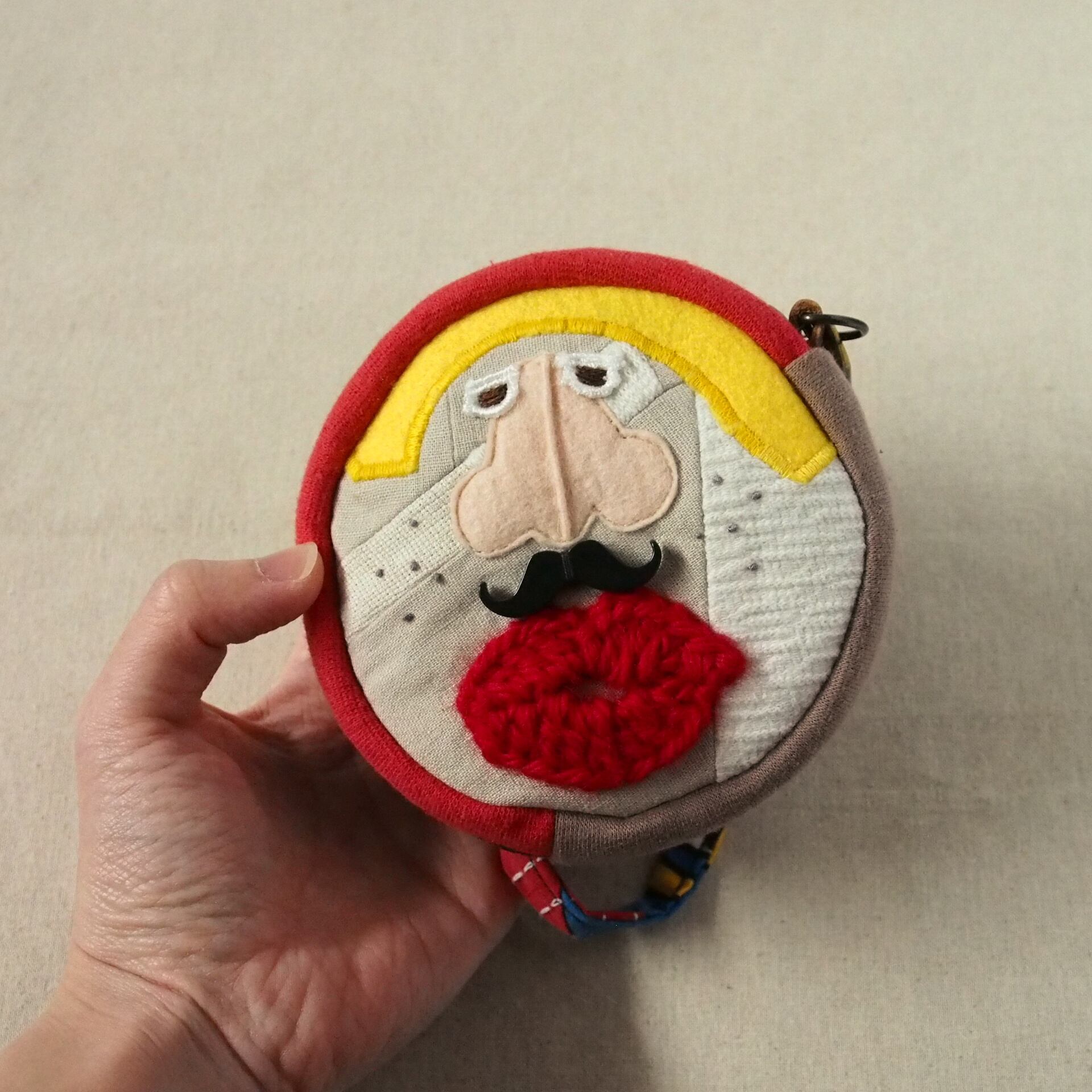 顔刺繍デザインが魅力的な丸っとポーチ。