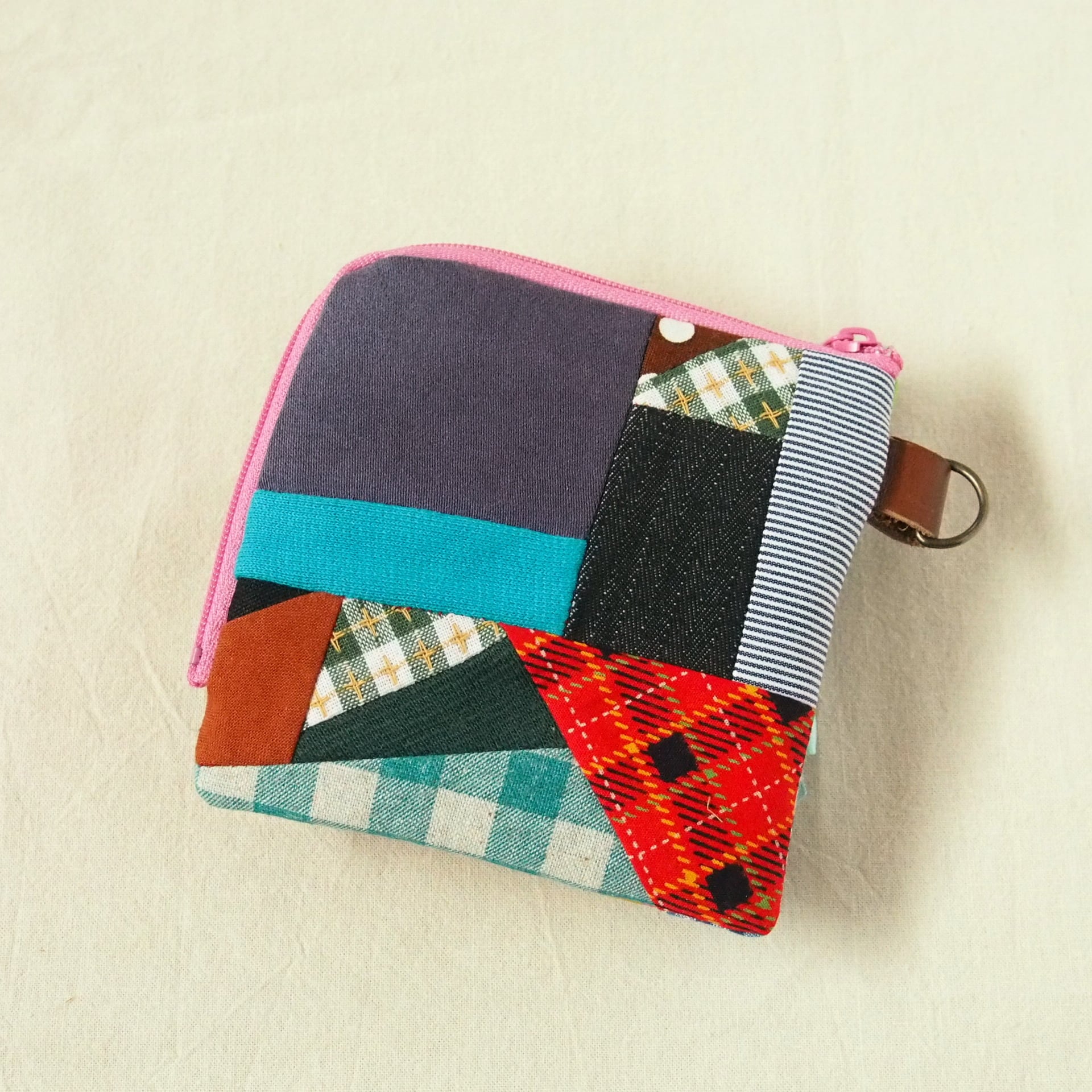 カオ刺繡のL字ジップお財布ポーチ